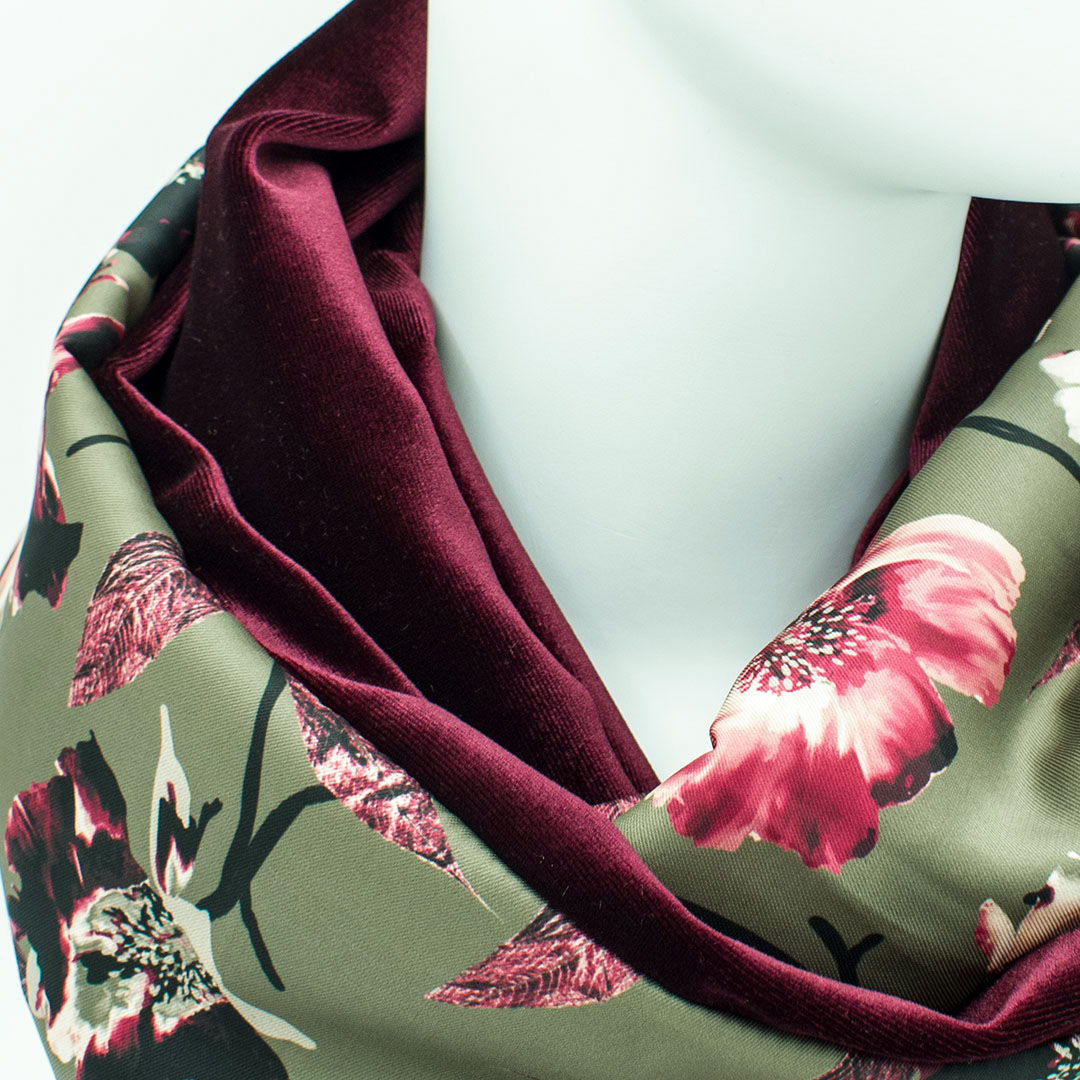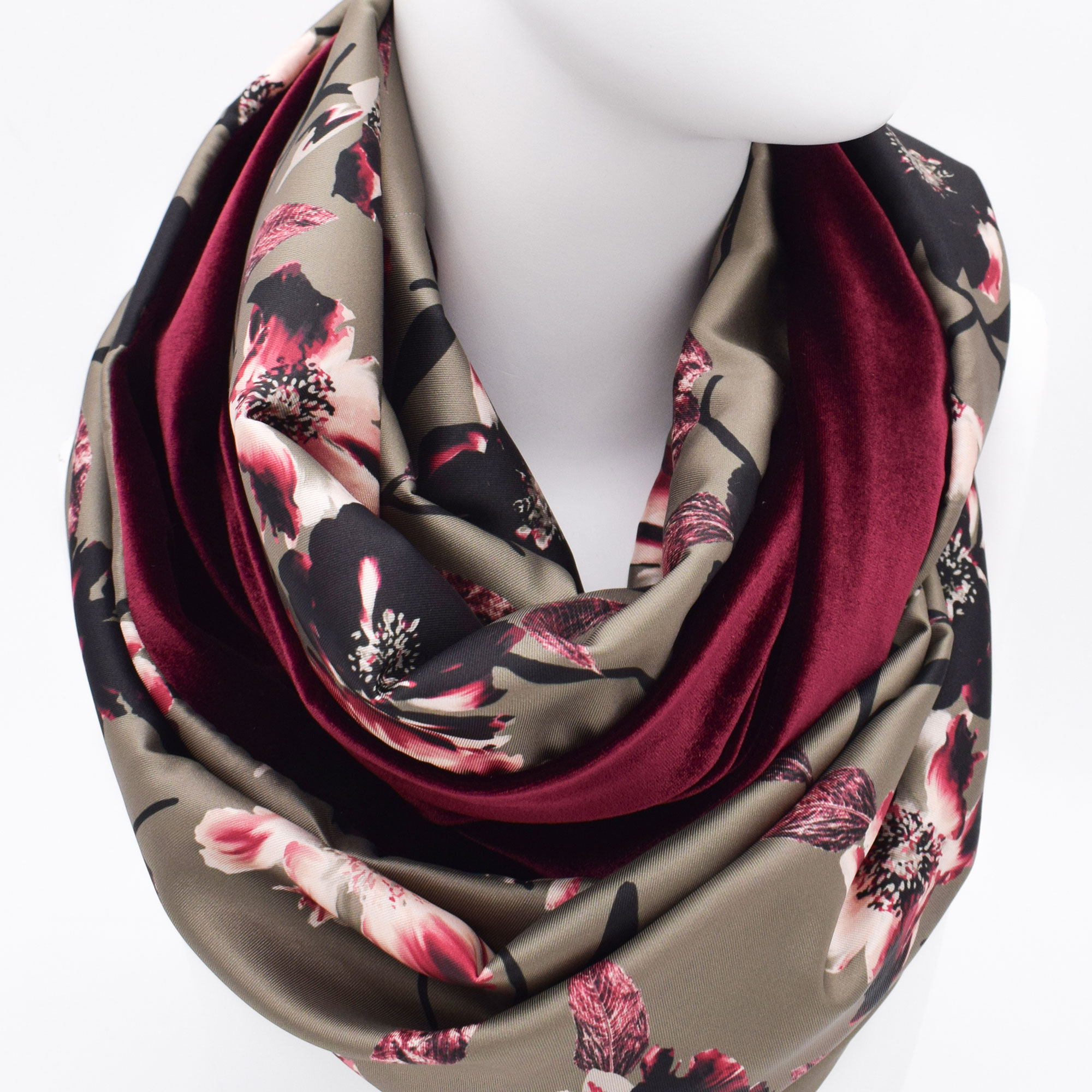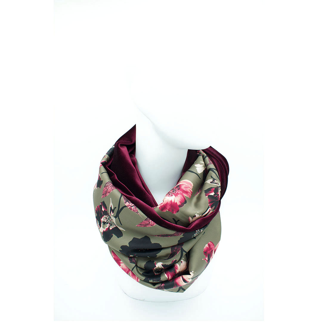 Φόρεσέ το τυλιγμένο δύο φορές γύρω από τον λαιμό για cozy χειμερινή εμφάνιση ή άφησέ το χαλαρό στους ώμους σαν εσάρπα για πιο elegant βραδινό look. Συνδυάζεται υπέροχα με ουδέτερα τοπ σε μπεζ ή μαύρο, ώστε να αναδειχθούν οι berry και λαδί αποχρώσεις του.