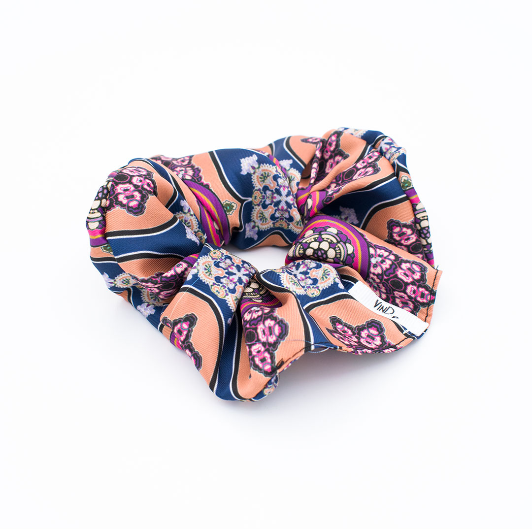 OFELIA ORANGE BLUE: Χειροποίητη στέκα, σατεν, scrunchie, blue, orange, navy blue